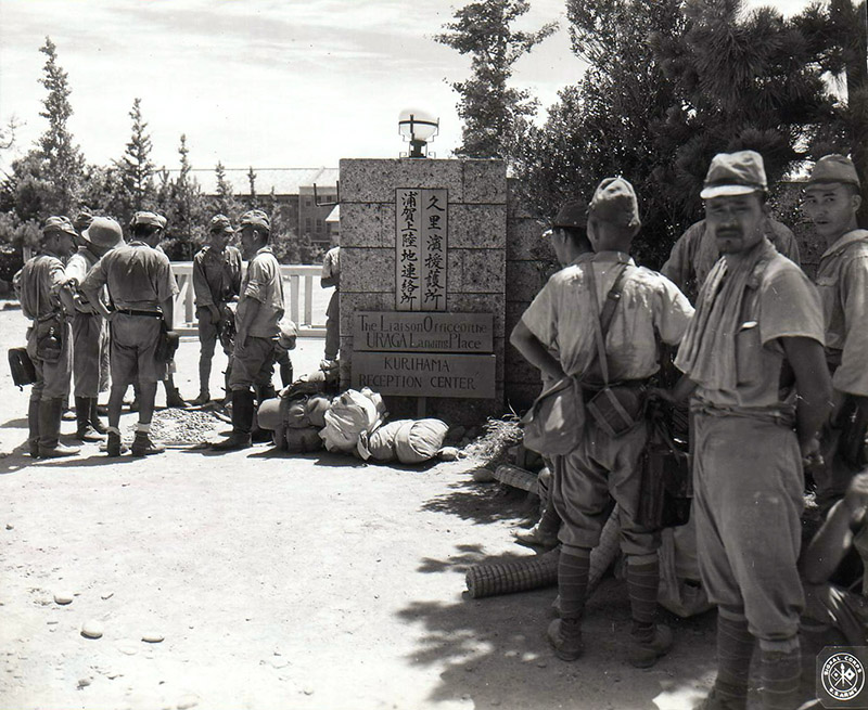 【図2】浦賀上陸地連絡所・久里浜援護所前で待機する復員兵(米国立公文書館所蔵・横須賀市立中央図書館郷土資料室提供)