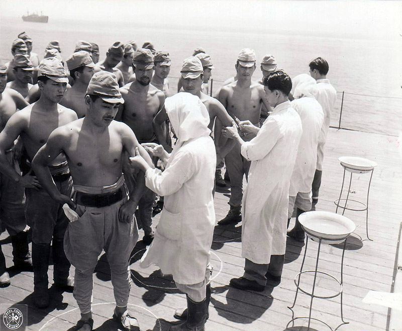 【図3】船上で接種を受ける復員兵(米国国立公文書館所蔵、横須賀市立中央図書館郷土資料室提供)